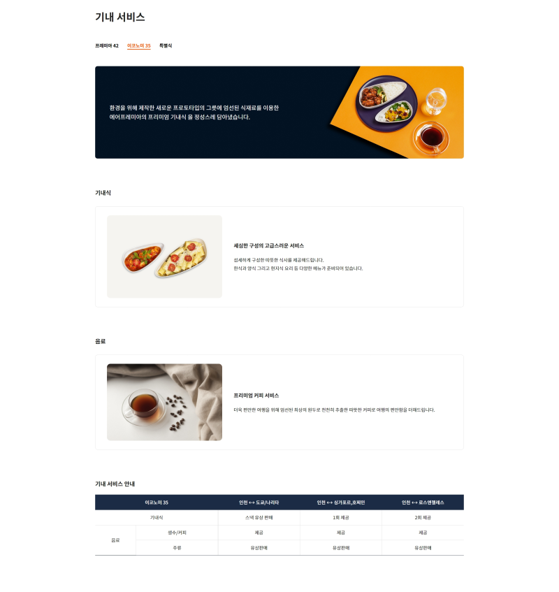 - ▲ 프리미엄 기내 서비스 제공: 승객의 편의를 위한 식음료 서비스, 면세품 판매 등 에어프레미아만의 차별화된 하이브리드 서비스를 제공합니다.