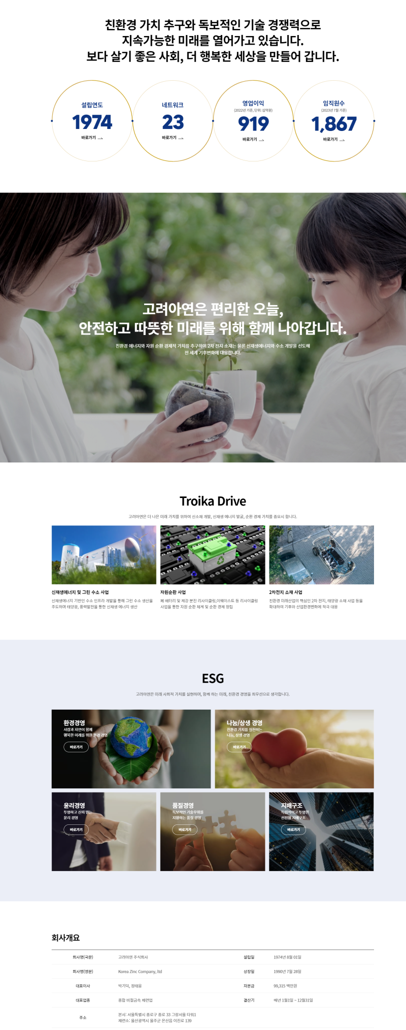 - **주요 사업:** 아연/연/금/은 등 비철금속 제련 및 판매, 전자재료, 2차 전지 소재(친환경 사업), 신재생 에너지(태양광, 수소) 등으로 사업 영역을 확장 중입니다.