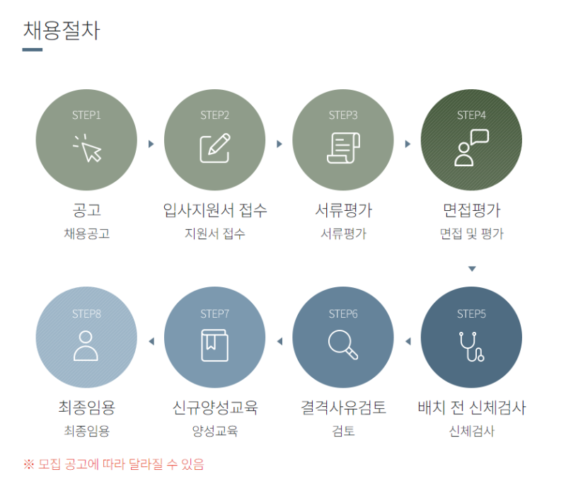 - ▲ 인재상: 전문성을 갖춘 인재, 책임감을 발휘하는 인재, 소통하고 협력하는 인재, 변화와 혁신을 추구하는 인재 – 단순히 기술만 아는 것이 아니라, 주인의식을 가지고 공동의 목표를 위해 함께 노력하며, 끊임없이 발전하는 자세를 가진 사람을 원합니다.