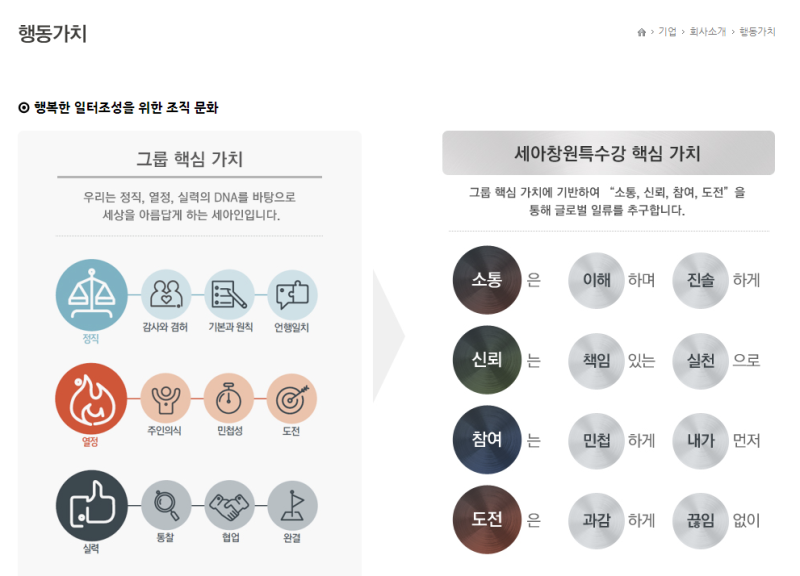 💡 세아창원특수강 분석자료 (핵심가치, 비전, 인재상, 각종 사업 등)