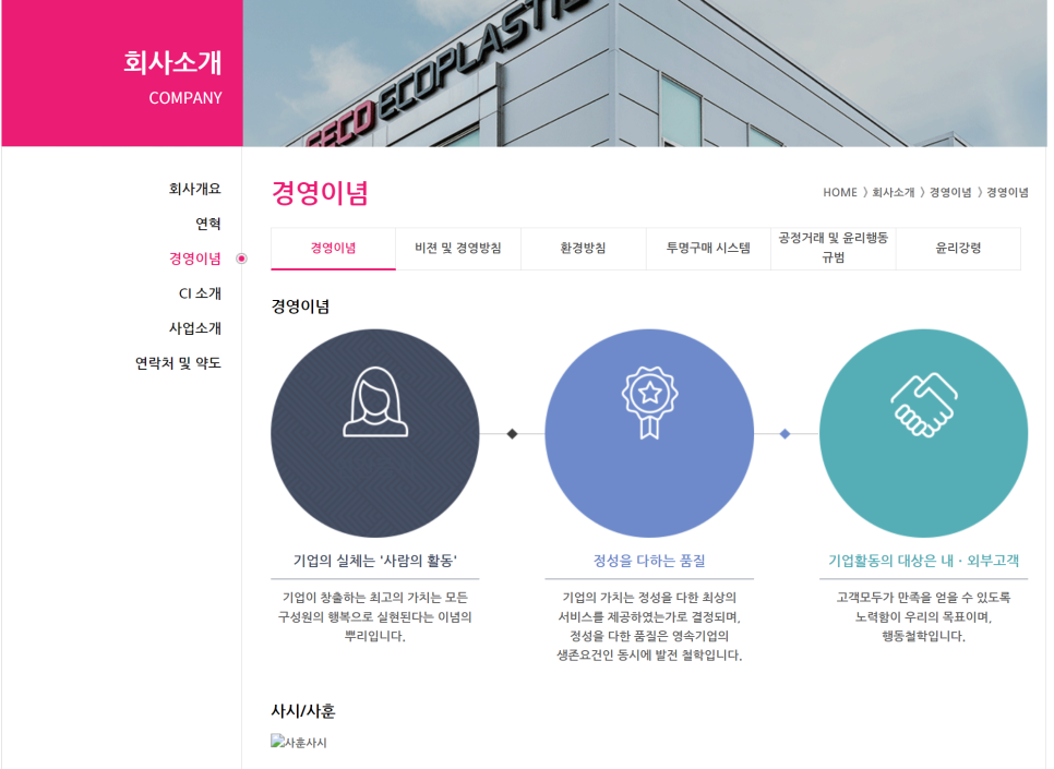 📊 에코플라스틱 분석자료 (핵심가치, 비전, 인재상, 각종 사업 등)