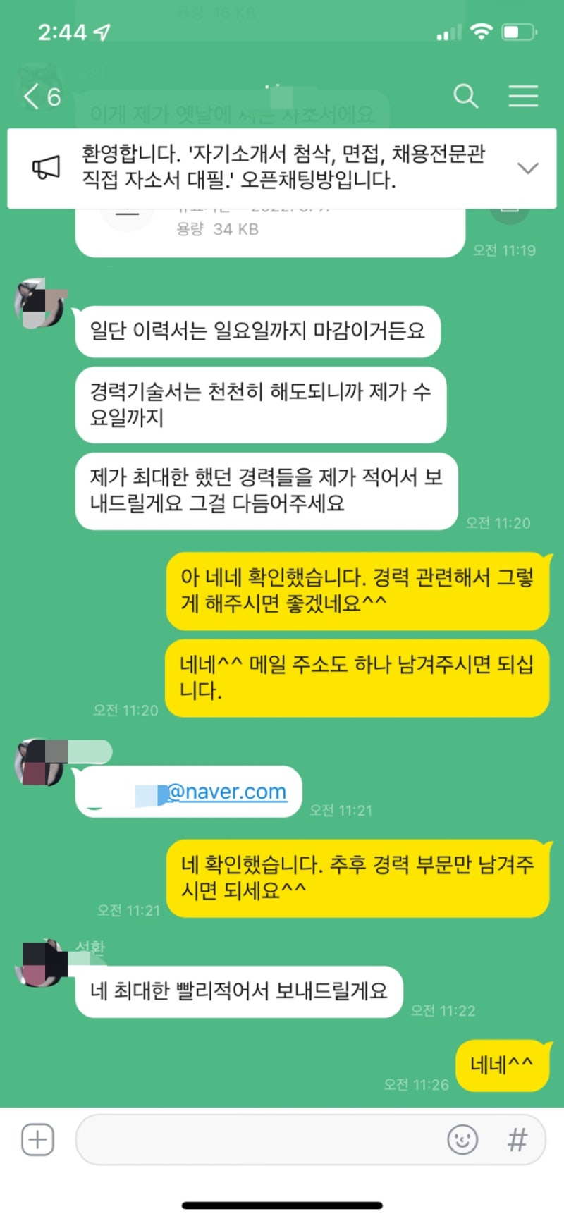 (이력서, 기존 자기소개서, 지원 직무 정보 등 공유)