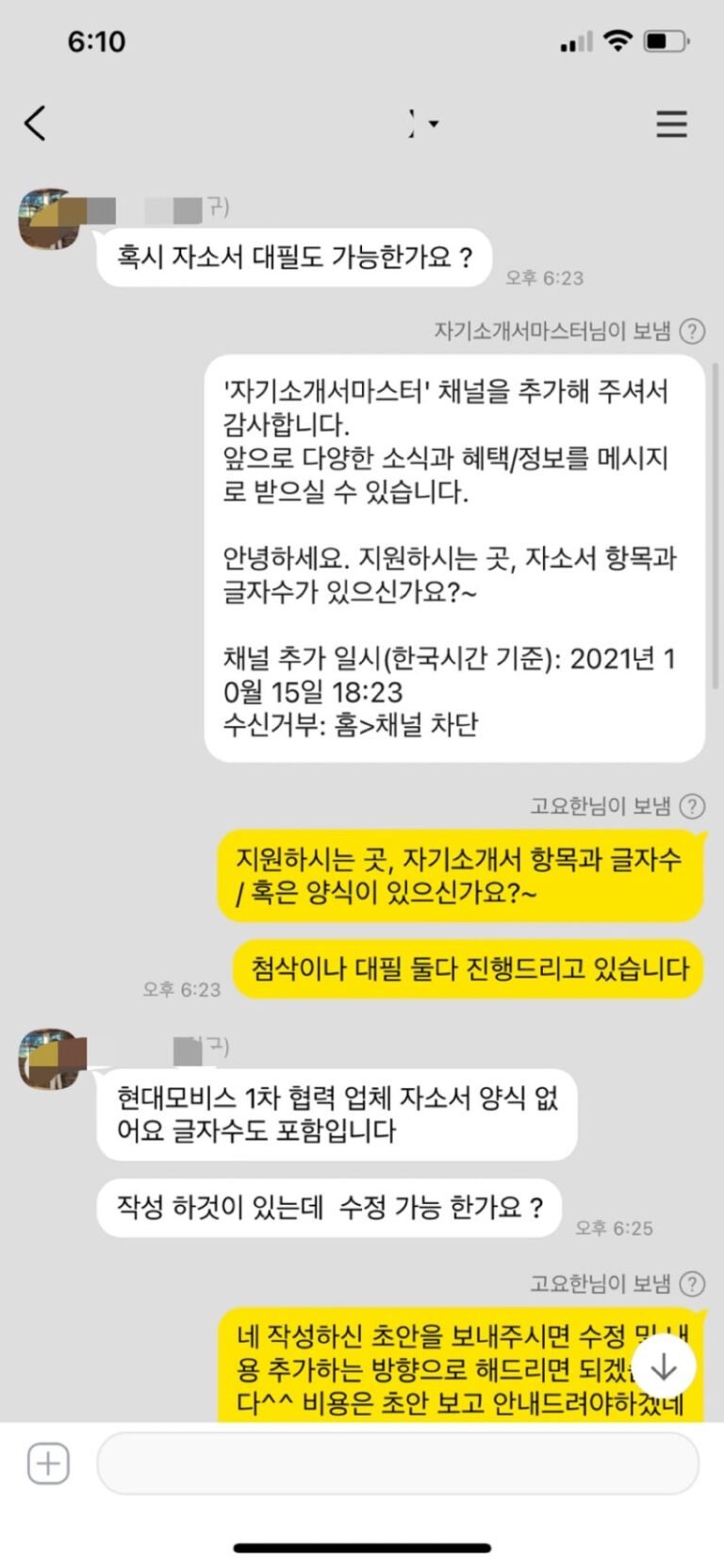 한국투자증권 자소서 첨삭 대필 합격후기
