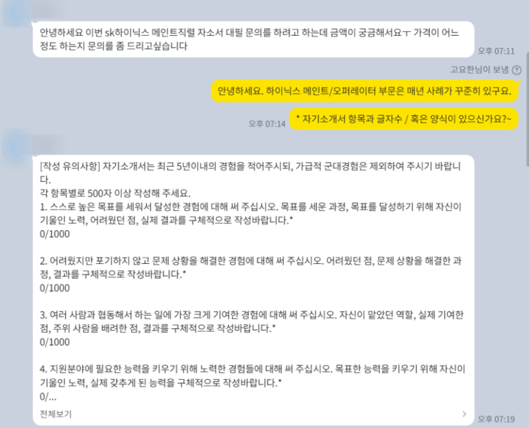 대기업 생산직 자소서 작성법, 자기소개서 첨삭 대행 합격 후기