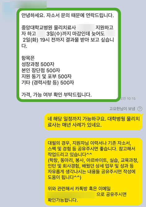자기소개서 자소서 첨삭 대필 합격후기