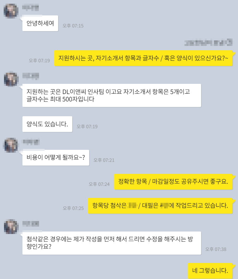 자소서 첨삭 및 대필 문의는 언제든지 환영입니다.